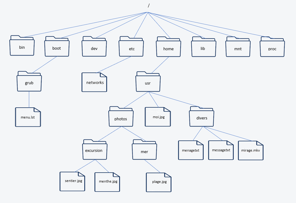L’arborescence d’un système GNU/Linux se présente sous la forme suivante :