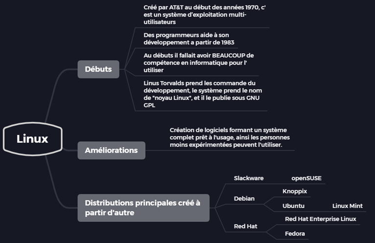 Sur la carte mentale ci-dessous on retrouve les principaux constituants d'un système d'exploitation.