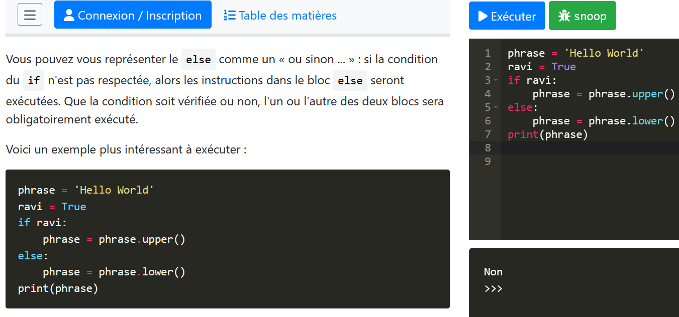 les pages liées aux "Structures conditionnelles `if`" et aux "Opérateurs booléens"