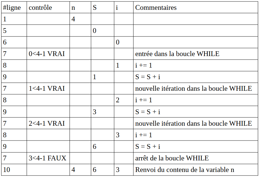 Une trace d'exécution (sous forme d'un tableau) peut alors être utile.
