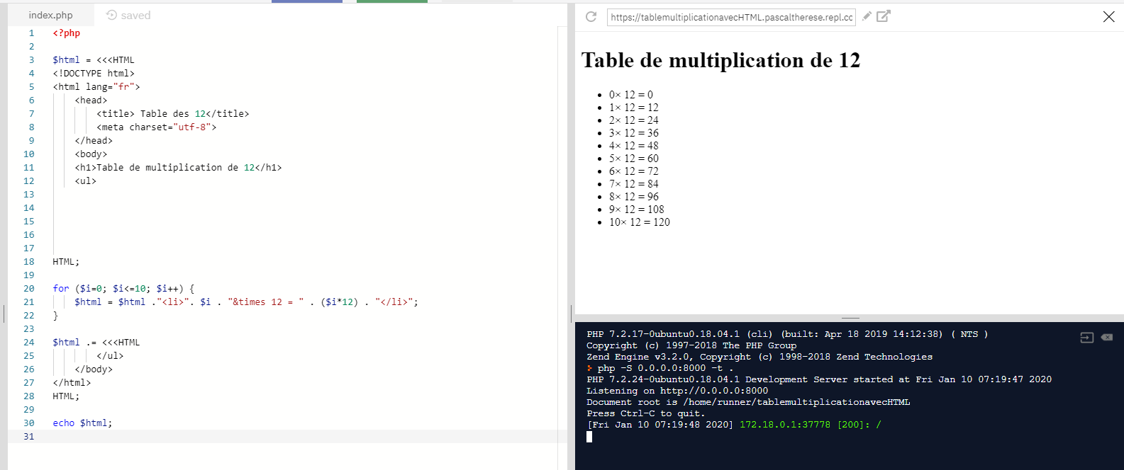 Vous retrouverez dans les "screen" ci-dessous différents exemples dans différents langages pour vous aider. Les "screen" proviennent de repl.it en ligne