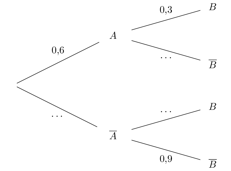 On considère les événements \(A\) et \(B\). L'arbre de probabilités ci-dessous est donné :