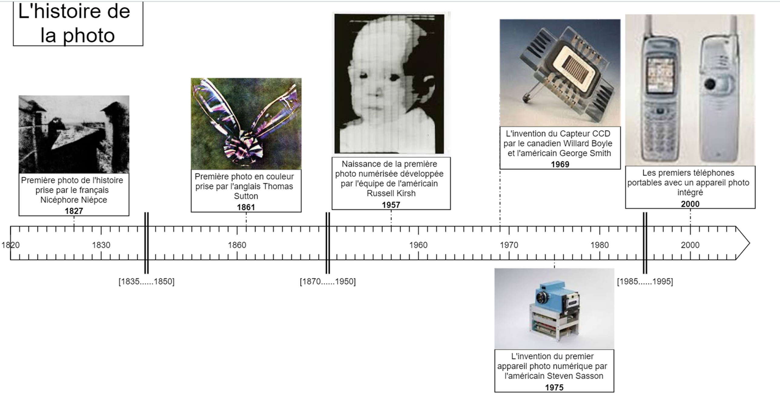 Ci-dessus quelques repères historiques de la photo numérique présentés sous la forme d'une frise :